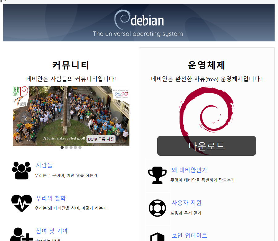 1. www.debian.org/ 에서 설치용 OS 파일을 다운로드합니다.