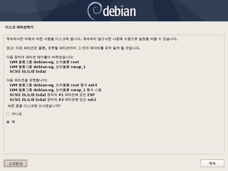 중간에 y를 입력해줘야 하는 부분이 있습니다.