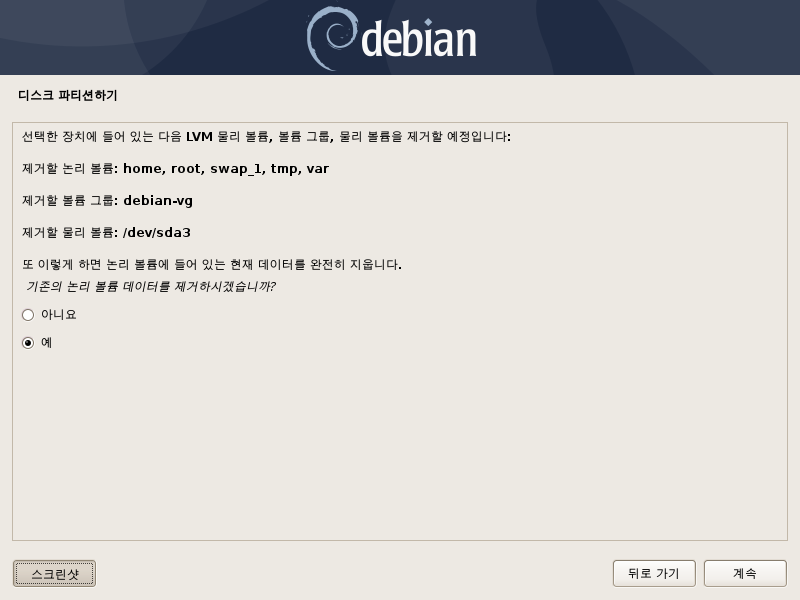 중간에 y를 입력해줘야 하는 부분이 있습니다.