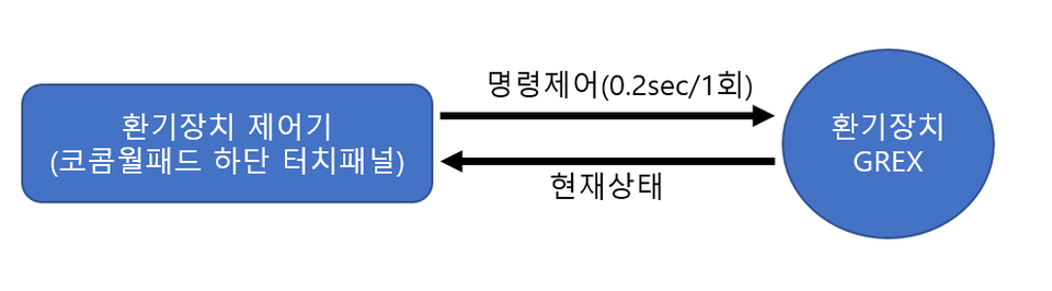 그러면 GREX환기장치는 신호에 대해서 모드를 바꾸고 제어기 신호에 대해 1:1 응답을 합니다.