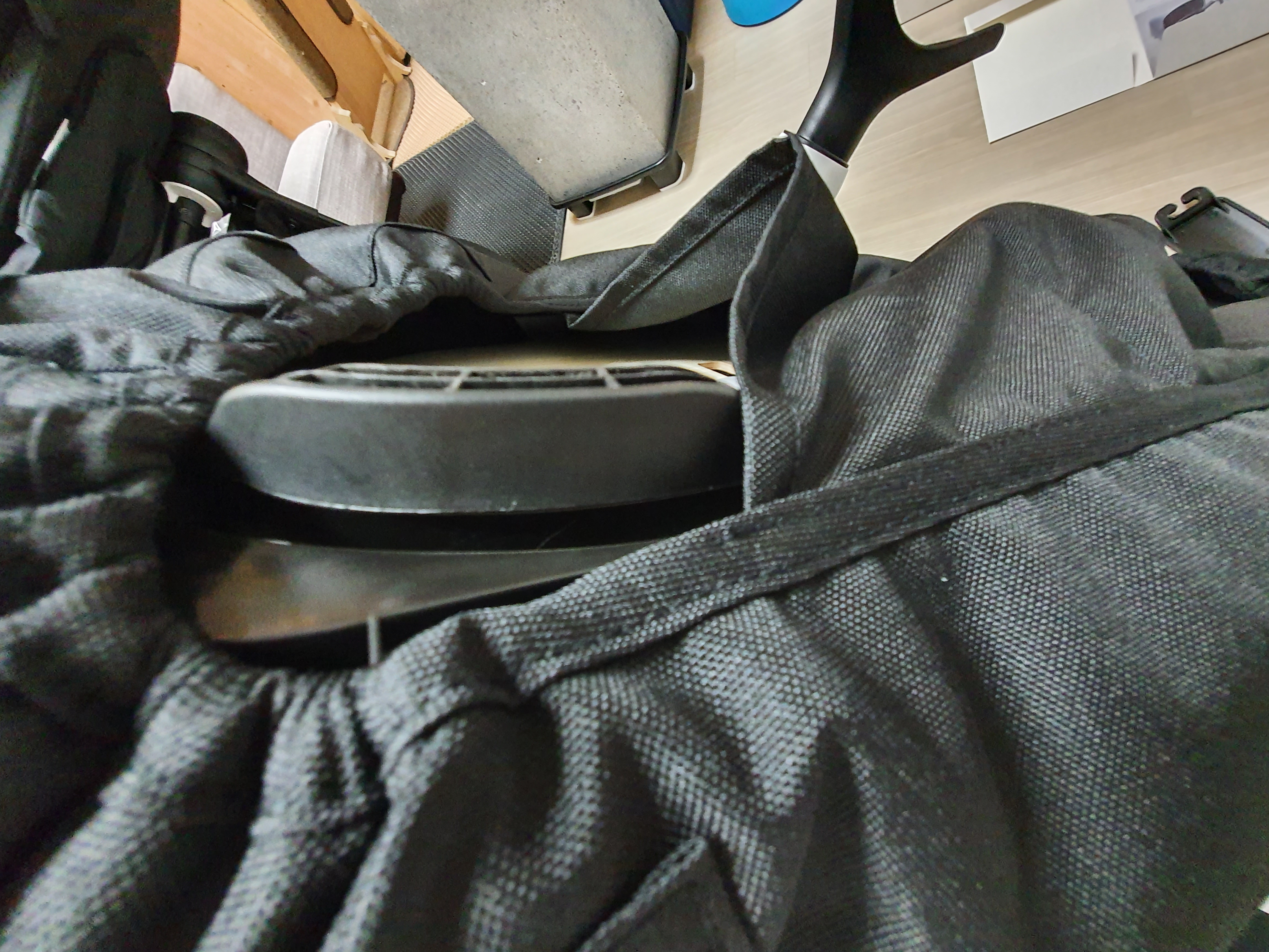 발 가리개? 를 지퍼로 채운 후