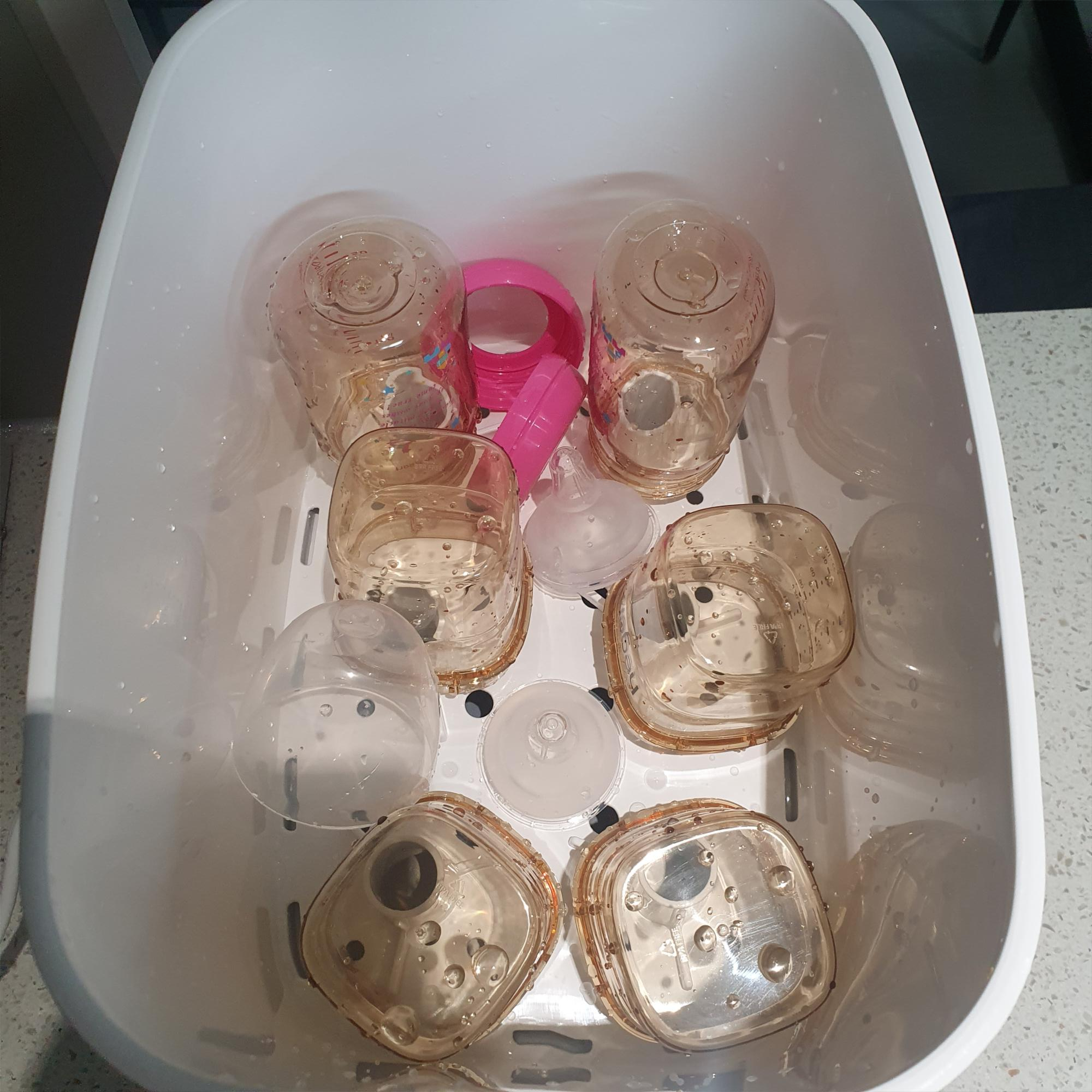 소독기와 젖병을 세척한 후